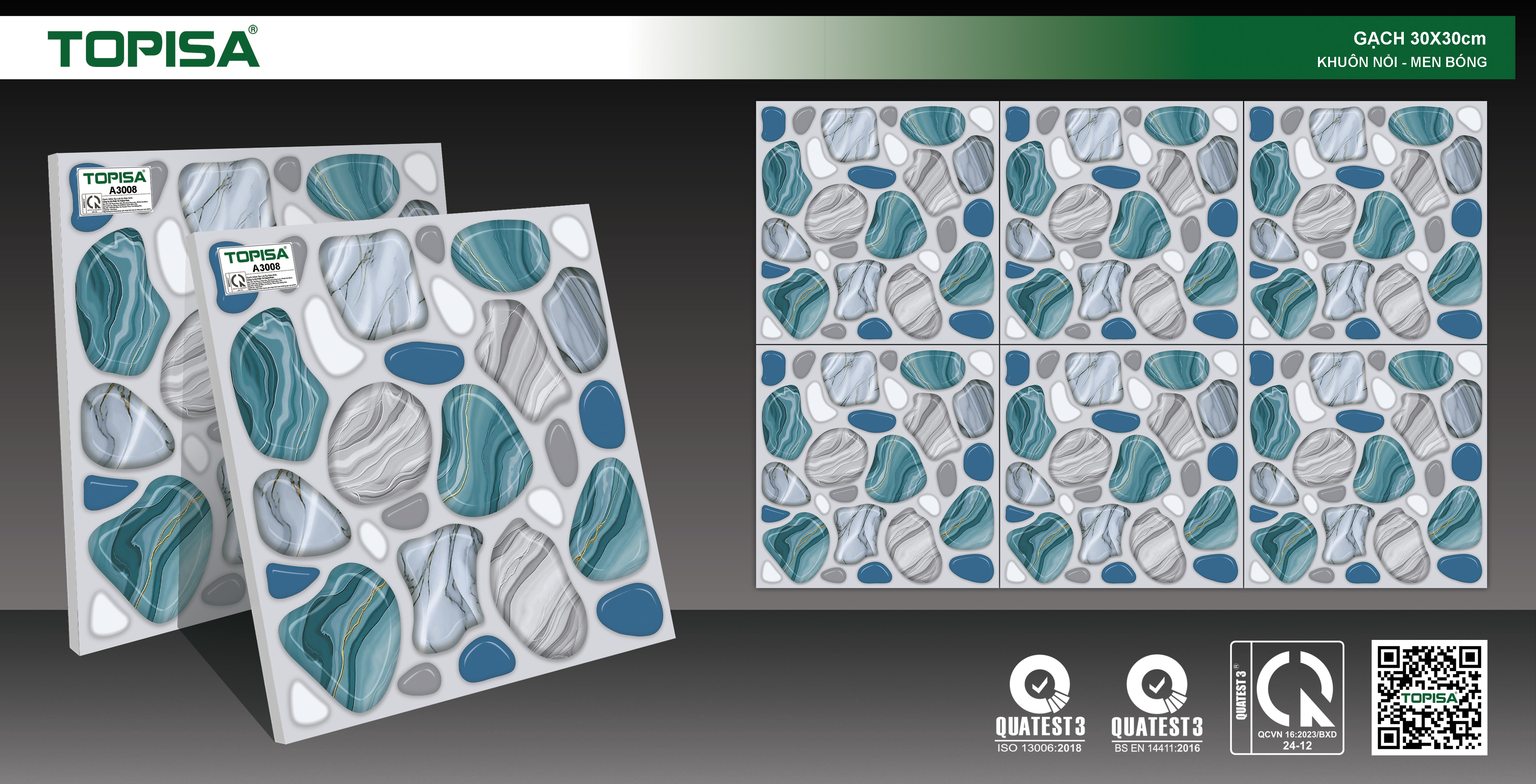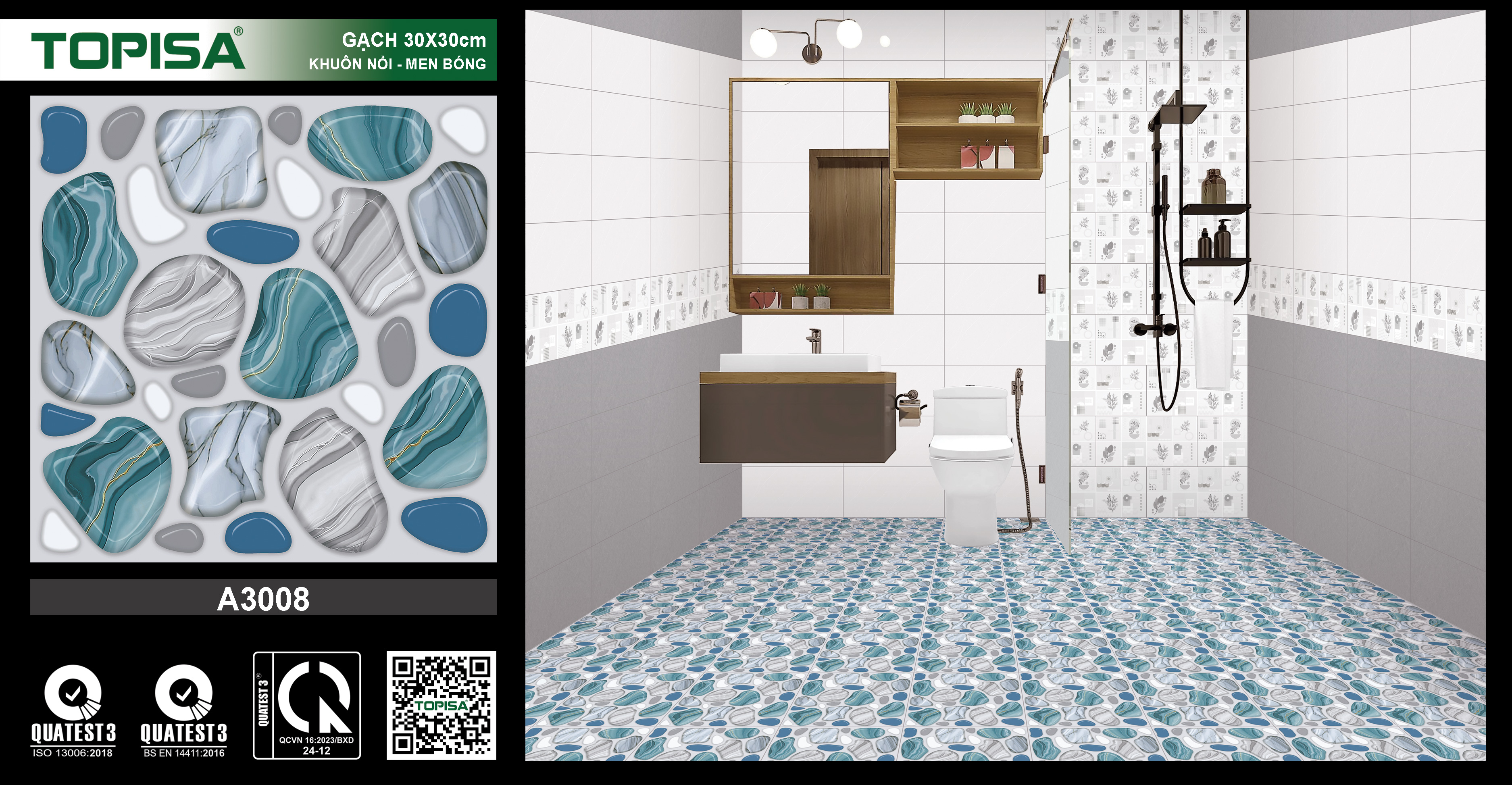 Khuôn nổi lồi lõm, thoát nước rất tốt. chống trơn trượt. Màu sắc tươi mát.